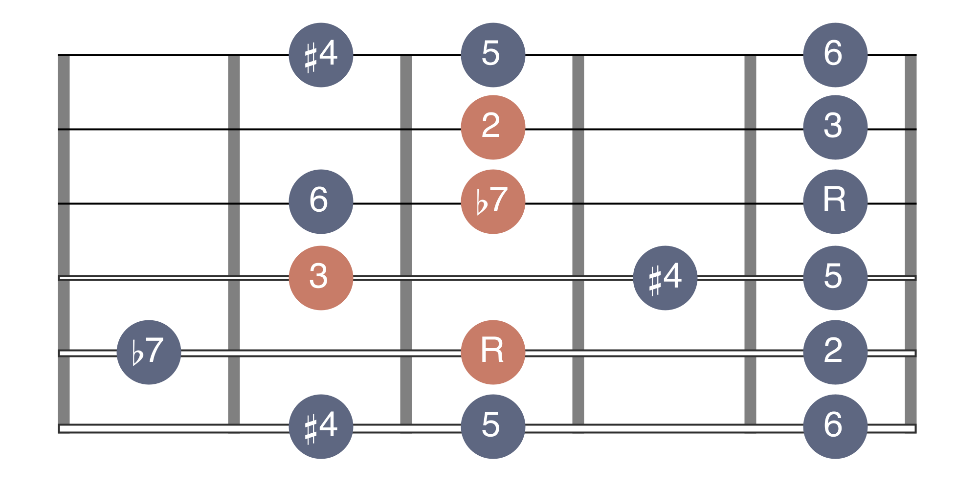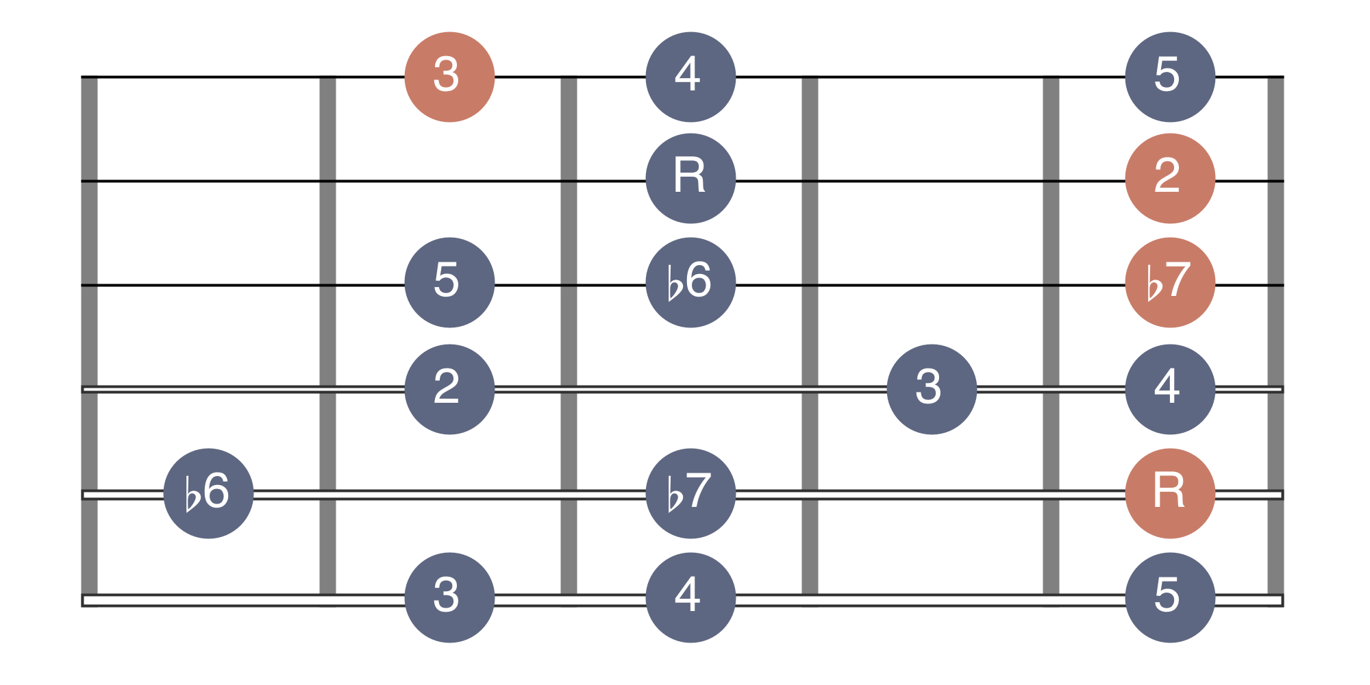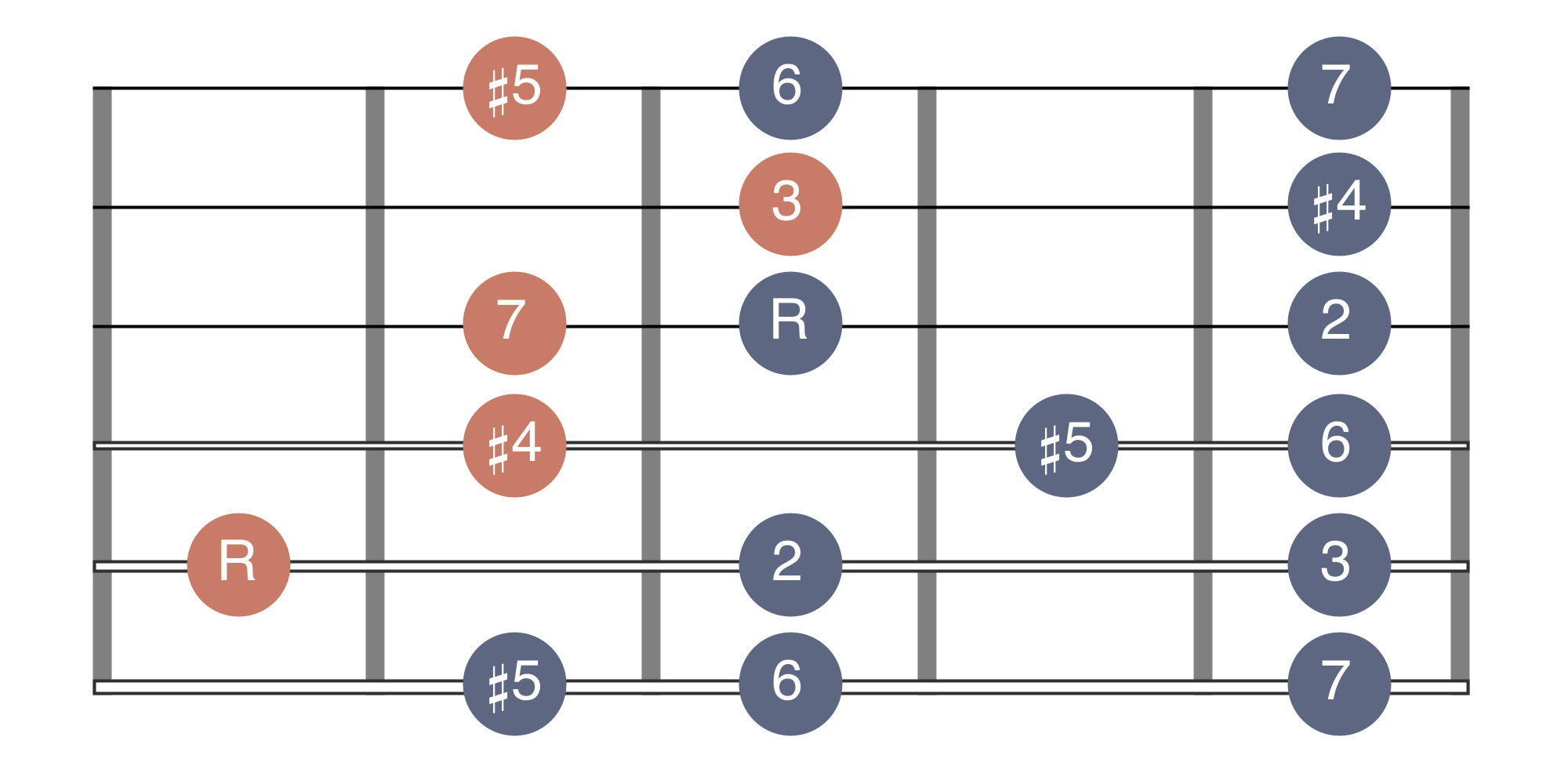 01-Melodic Minor 02-Phrygian ♮6 03-Lydian Augmented 04-Lydian Dominant 05-Mixolydian ♭6 06-Locrian ♮2 07-Altered Scale