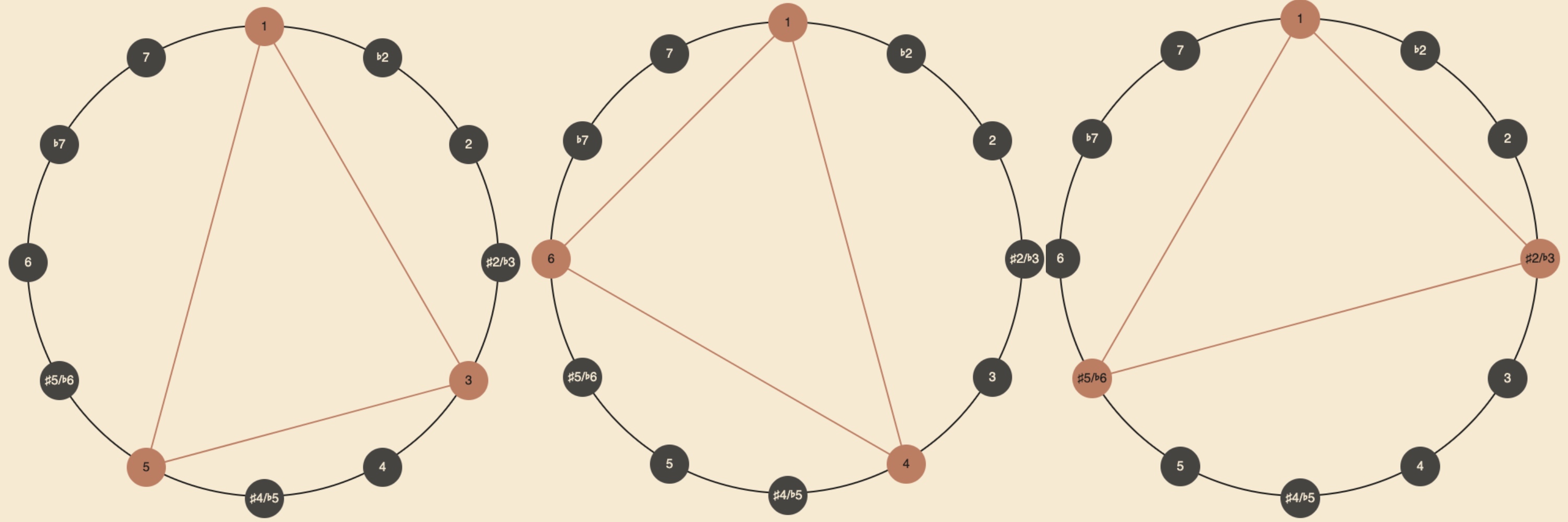 For example, a major triad (1–3–5) can be inverted to forms like 1–4–6 or 1–♭3–♭6, giving you fresh harmonic possibilities at a glance.